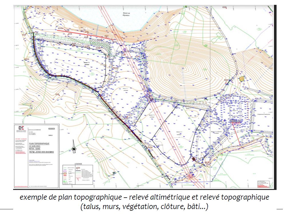 À partir des relevés topographiques, nous pouvons effectuer un calcul numérique 3D pour modéliser le relief et dessiner les courbes de niveau d’un terrain.