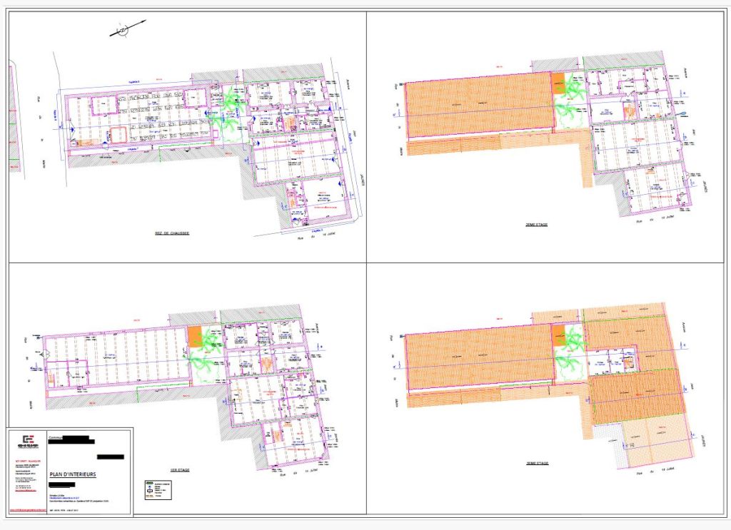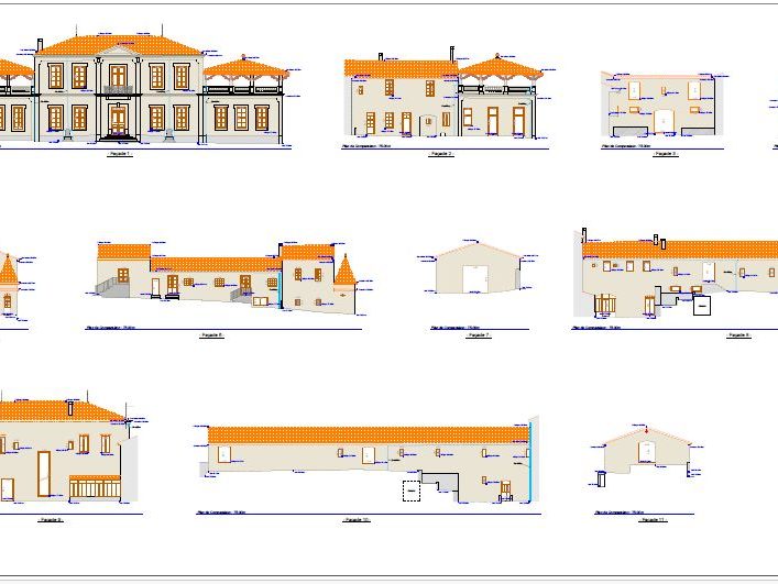 - Plans des façades des bâtiments (élévations) avec tout les éléments existants, altimétries des points particuliers (sol, niveau des étages, toitures…)